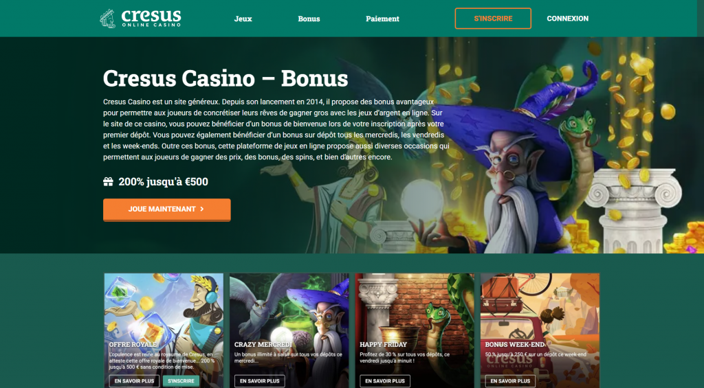 L’un des atouts majeurs de Cresus Casino réside dans ses bonus particulièrement généreux et souvent sans condition de mise (wagering). Le bonus de bienvenue peut atteindre 200 % jusqu’à 500 € selon les promotions en cours, accompagné parfois de tours gratuits. Les retraits sont traités rapidement, souvent en moins de 24 heures pour les portefeuilles électroniques, avec un dépôt minimum accessible dès 15-20 €. Le programme VIP offre des avantages exclusifs comme des cashback élevés, des limites de retrait augmentées et un gestionnaire de compte personnel. Le support client, disponible 24h/24 en français, est reconnu pour sa réactivité et sa courtoisie.